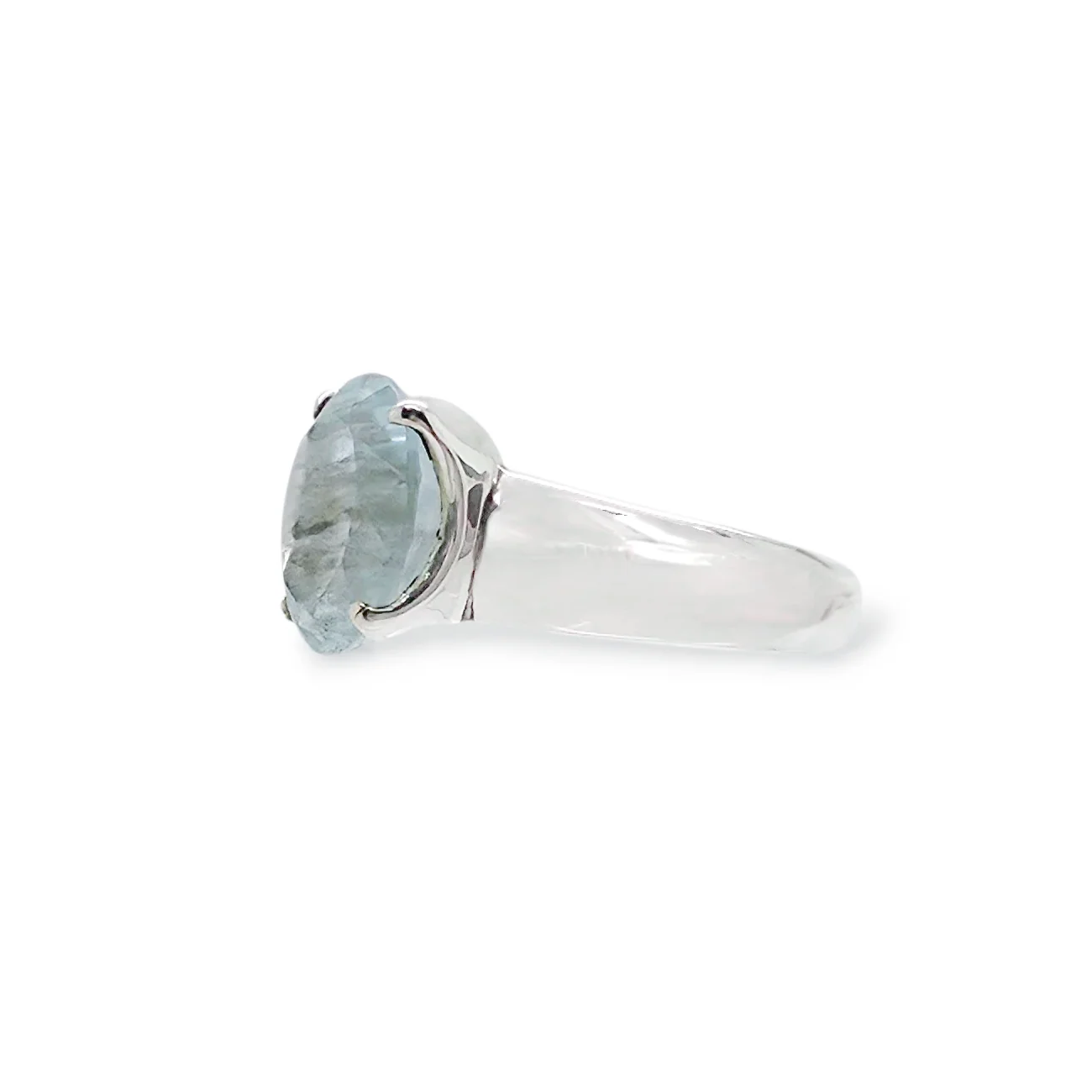 This stunning aquamarine ring features a luminous oval-cut gemstone set within an elevated crown mounting that emphasizes its natural brilliance. The serene blue stone is complemented by the ring's refined architectural framework, delivering a sophisticated aesthetic. Crafted by Australian designer Preyas Jewellery. All Preyas jewellery is made using top quality 925 sterling silver, it is nickel free & hypoallergenic.